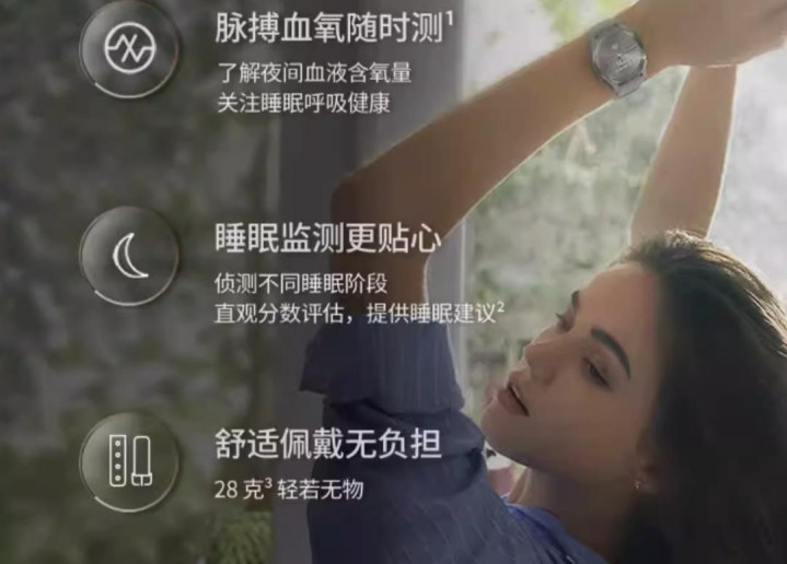 ● 健康监测:全天候心率、血氧、压力、睡眠监测,数据专业度更高
