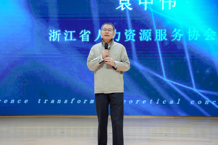 (图:浙江省人力资源服务协会会长袁中伟致辞)