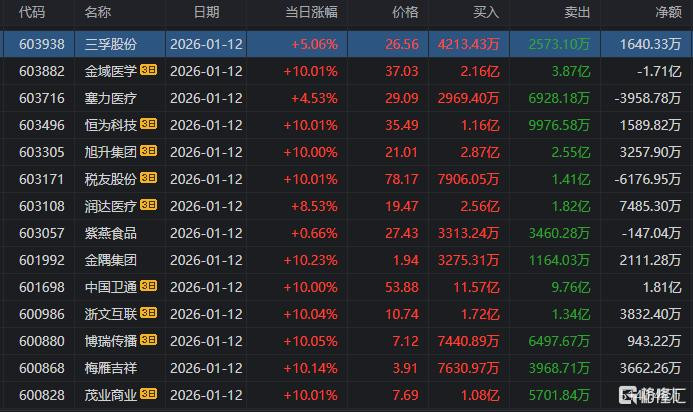 龙虎榜单日净买入额前三为山子高科、汉得信息、岩山科技,分别为9.36亿元、4.82亿元、4.21亿元。