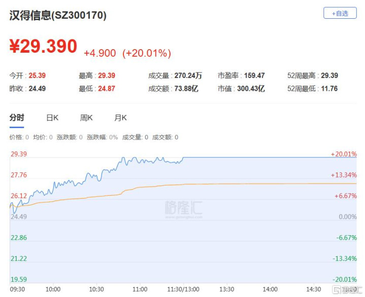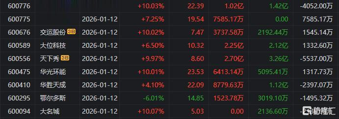 涪陵广场路:净买入汉得信息3.219亿元、大位科技1.4亿元