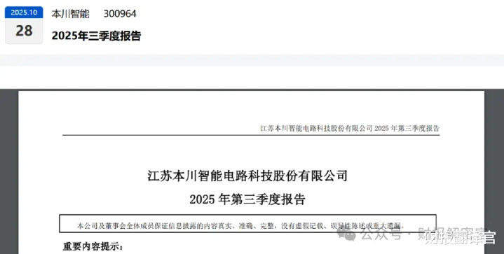 财官干了这么多年财报侦探,早就练出了一种嗅觉:当一家公司的业绩出现“简单粗暴”的漂亮增长时,反而最值得警惕。今天这桩案子,从表面看简直是一份“模范生”答卷——本川智能,一家印制电路板(PCB)公司,2025年三季度净利润3307.62万元,同比暴增56.24%,且已超去年全年。