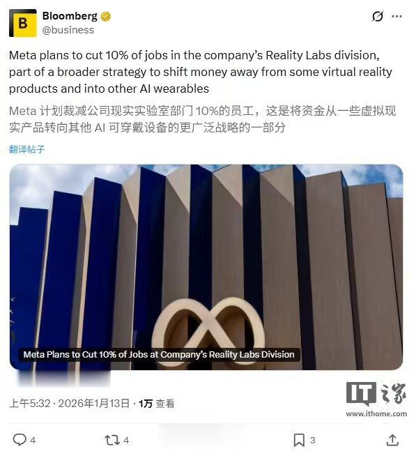 据介绍,此次裁员重点集中在元宇宙团队方面。这一调整被解读为Meta全面押注AI战略,公司资源与管理重心正进一步从虚拟现实(VR)与元宇宙业务转向AI领域。