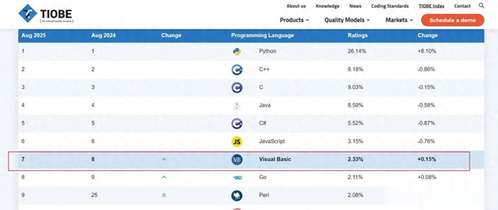 都2025年了,VB居然还在编程语言排行榜前十。我刚看到TIOBE的榜时也不信,这玩意不是早该进博物馆了吗?结果人家排名还挺稳,比不少新出的语言都高。