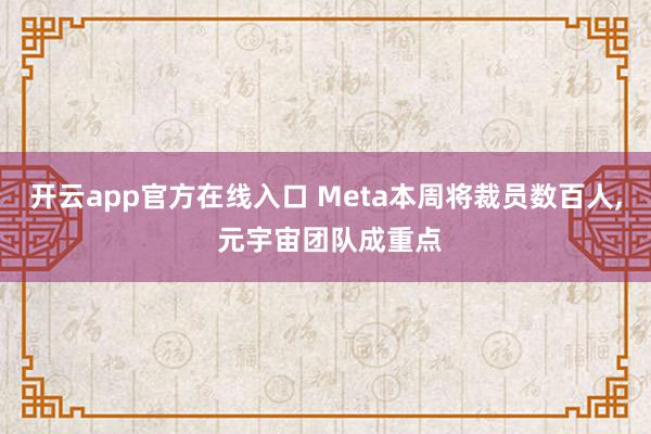 开云app官方在线入口 Meta本周将裁员数百人, 元宇宙团队成重点