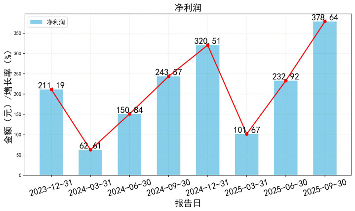 2025年前三季度,公司实现营业收入2541.99亿元,同比增长10.33%。更惊人的是归母净利润达到378.64亿元,同比大幅增长55.41%。