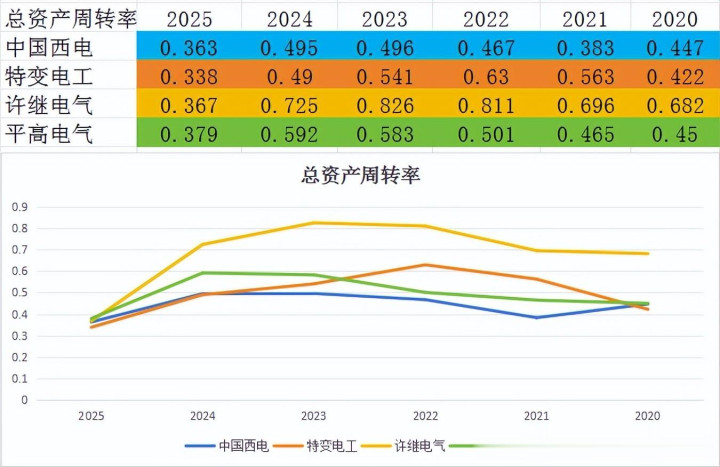 近几年,平高电气和中国西电的总资产周转率,提升比较明显。