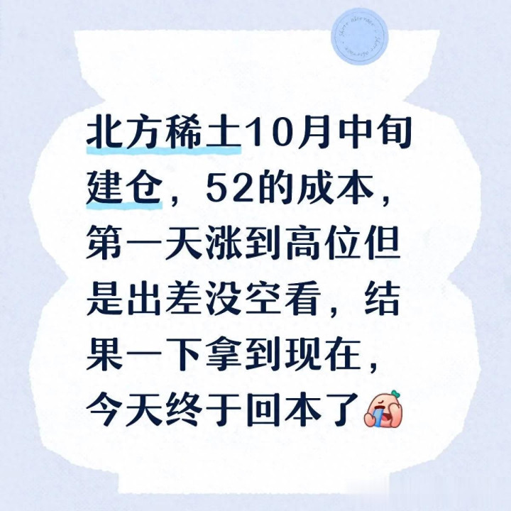这位投资者持有北方稀土数月才回本的经历,印证了稀土投资的核心:稀土是强周期板块,短期波动难免,但只要抓住新能源产业的长期趋势,熬得住周期的震荡,就能获得相应的收益。对于普通投资者来说,与其纠结于短期的股价涨跌,不如看清产业逻辑,做好仓位管理,才能在稀土投资中站稳脚跟。