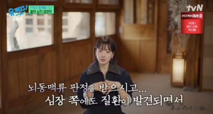朴信惠在节目中直言,脑动脉瘤最令人害怕的地方不是“疼不疼”,而是那种随时可能发生意外的未知感——你不知道它什么时候会突然破裂。