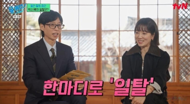 节目一开始,主持人刘在石就称赞朴信惠是演艺圈公认的“孝女代表”。