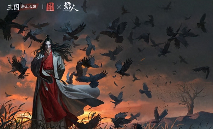 画像中的郭嘉,身着带有西域纹样的服饰,既有三国谋士的儒雅,又有知世郎的放浪;背景里的大漠风沙与漫天乌鸦图,既贴合风云大漠的主题,又暗合郭嘉“英年早逝”的命运。