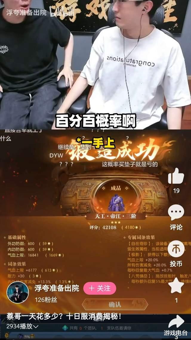 短短六天时间,浮夸就在十日服中花掉了66万人民币,平均每天超过10万块。尽管花钱如流水,但看着自己身上碾压众人的装备评分和服务器最高战力的排名,他还是在直播时忍不住的笑出声来。显然,跟花的钱相比,这种满足感对他来说更值得。